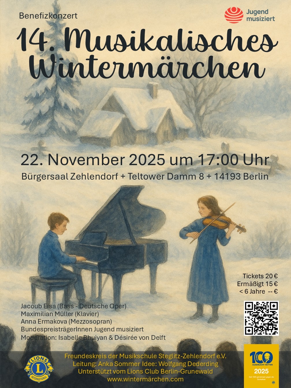Das Musikalische Wintermärchen ist die Traditionsveranstaltung des Freundeskreis der Musikschule Steglitz-Zehlendorf. Erstmal beteiligen sich die Lions Berlin-Grunewald an der Organisation.