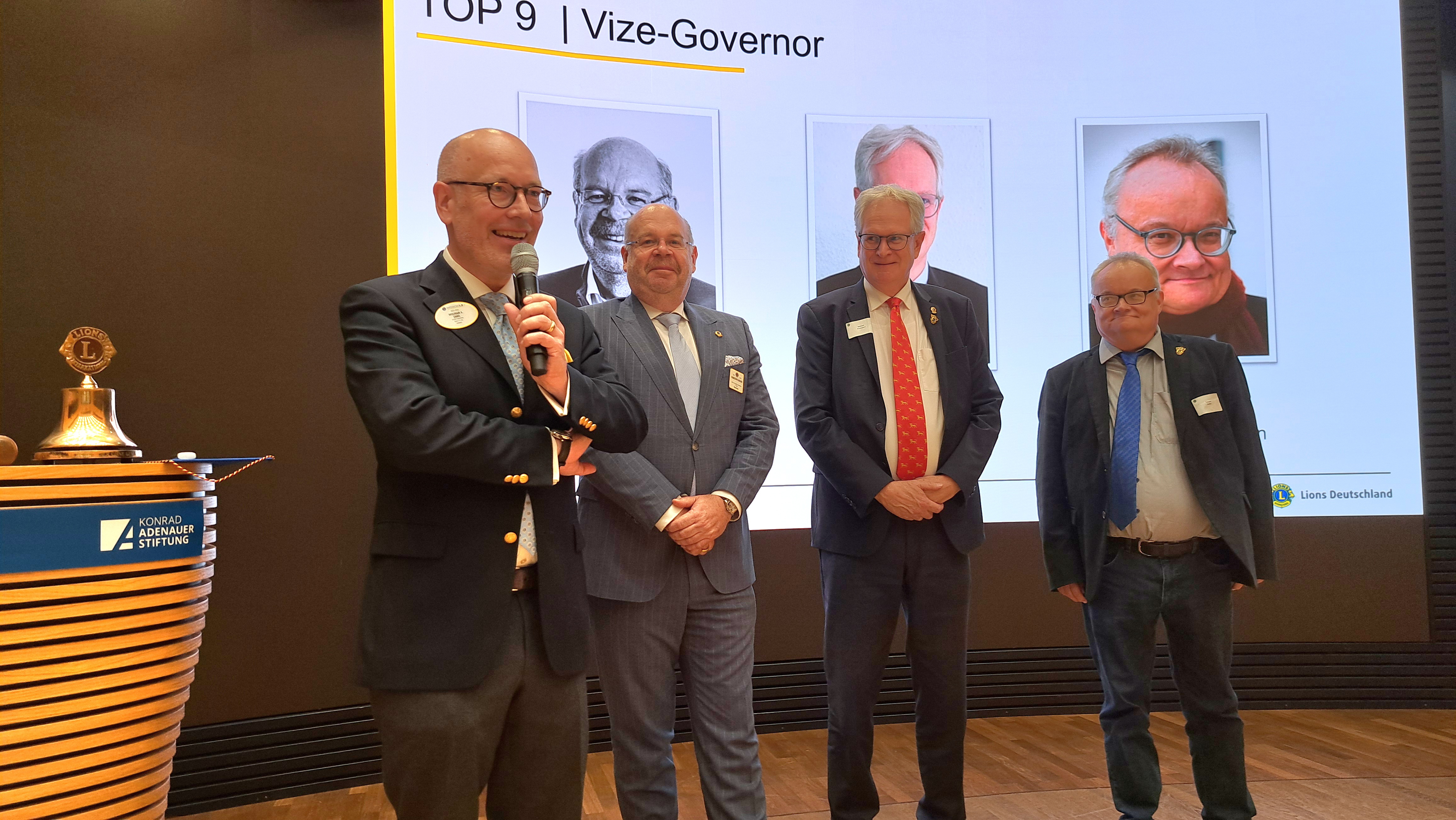 In seinem Governorjahr möchte Wolfram Zabel das Kabinett als Dienstleister der Lions Clubs weiterhin etablieren und stellte daher den Delegierten die Amtsträger und Beauftragten vor. Neben seinen Zielen, neue Clubs zu gründen und bestehende zu stärken, legt er auch einen Fokus auf des Ur-Thema der Lions: Augenlicht retten. In diesem Kontext nutzte der Kabinettbeauftragte für Saving Vision, Oliver Voigt, die Distriktversammlung, um den Blick auf den RTL-Spendenmarathon am 20. und 21. November zu lenken. Auch in diesem Jahr wollen die Lions bis dahin die Spendensumme von 600.000 Euro erreichen, damit jeder Euro doppelt zählt, wenn die Stiftung RTL die Lions-Spende verdoppelt, damit Kindern in Kenia mit dem Bau einer Augenklinik eine Zukunft geschenkt werden kann. Online spenden - Stiftung der Deutschen Lions - Lions Deutschland